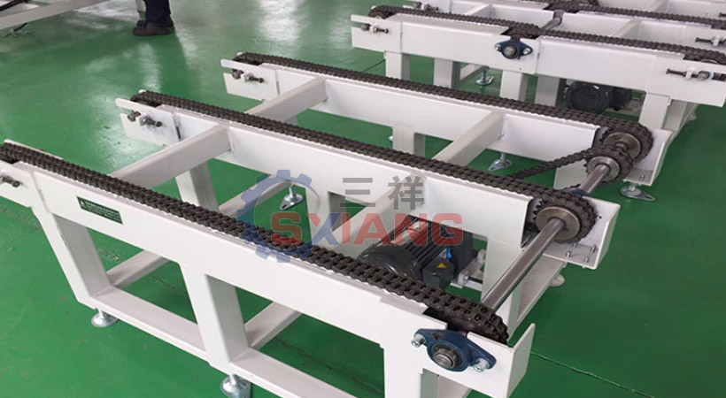 產(chǎn)品介紹:鏈式輸送機是利用鏈條牽引、承載,或由鏈條上安裝的板條、金屬網(wǎng)帶和輥道等承載物料的輸送機。可分為鏈條式、鏈板式、鏈網(wǎng)式和板條式等。常與其他輸送機、升降裝置等組成各種功能的生產(chǎn)線。